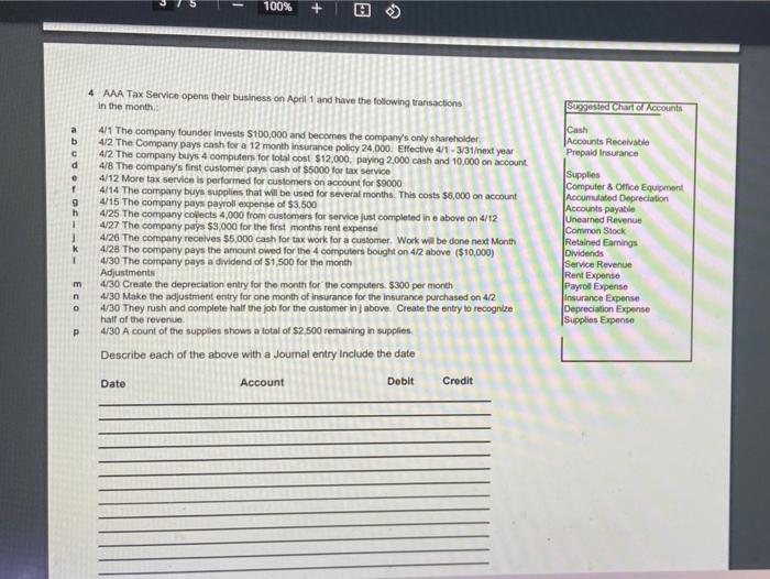 Solved 100 4 Aaa Tax Service Opens Their Business On Chegg Com